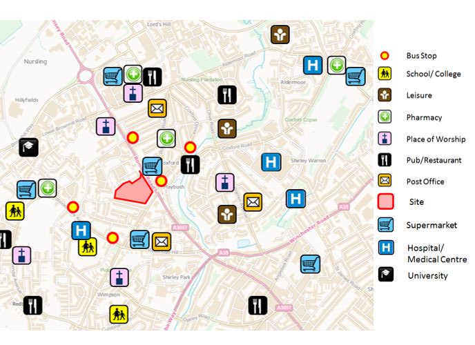 The bus routes link the site to the Southampton Central railway station. The station is primarily served by South Western Railways operating direct services to London Waterloo including stops at Winchester, Basingstoke, Woking and Clapham Junction.