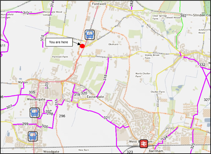 Your new home is located near a number of footways and Public Rights of Way. These are presented in the map below, showing how these routes can provide access to your nearest bus and rail stations.
