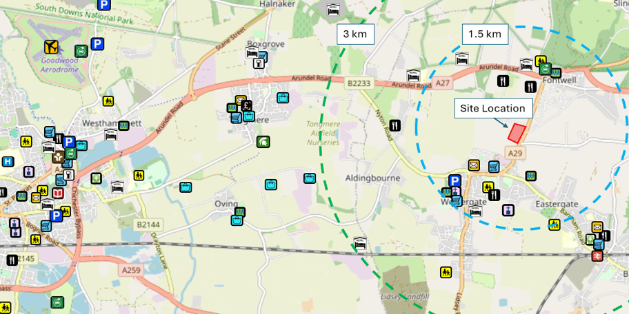 Chichester and Arundel are both around a 30-minute cycle away, with Barnham, Eastergate and Westergate amenities being located around 5-10 minutes from the site and also offers a wide range of services and shops. The accessibility map below highlights all of the major amenities and points of interest that can be found in the vicinity of your home.