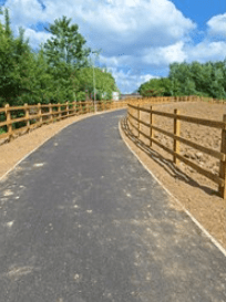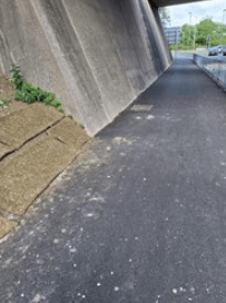 - This wide hard surfaced path leads you towards the A3(M) junction/ Rusty Cutter roundabout. Here you will find a succession of signalised crossing points connected by short sections of path, as seen in the images below.