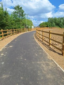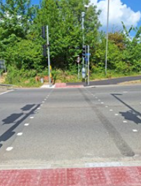 - This wide hard surfaced path leads you towards the A3(M) junction/ Rusty Cutter roundabout. Here you will find a succession of signalised crossing points connected by short sections of path, as seen in the images below.