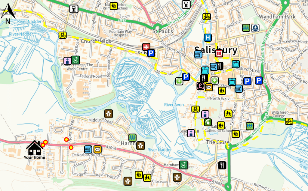 Here you can find a link to a map of Salisbury and Wilton walking routes: www.connectingwiltshire.co.uk/wp-content/uploads/2021/07/Salisbury_Walking_Map_2021_WEB.pdf