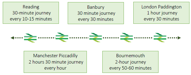 For journey times and destinations please visit https://www.nationalrail.co.uk/stations/oxford/ and a selection of journeys running from Oxford Train Station are included below.