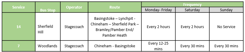 - The Stagecoach 14 service is from Basingstoke to Tadley via Chineham, Sherfield-on-Loddon and Bramley, operating every 2 hours Monday to Saturday.