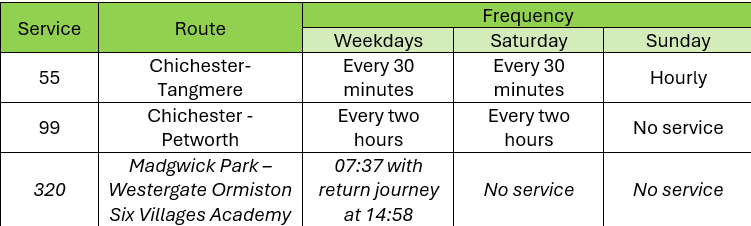 Stay up to date with your nearby bus services as well as other local bus routes and times by visiting https://www.westsussex.gov.uk/roads-and-travel/travel-and-public-transport/bus-and-coach-travel/plan-your-journey/bus-routes-and-timetables/.