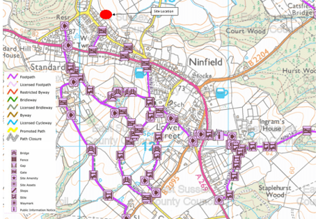 Your new home has a number of footways and Public Rights of Way (PRoW) located nearby. Ninfield circular is a 7 mile walk which starts in Ninfield and heads towards Hooe Common – Pevensey levels – Waller’s Haven and then back towards Boreham Street. Nearby routes to your home are shown below. The map below also shows some of your local public rights of way routes to help you explore Ninfield. An intermittent footway is provided along the A269 towards Bexhill, with a continuous footway provided closer to Bexhill after Lunsford’s Cross, providing access to Bexhill Town Centre to amenities and facilities. To have a closer look at the map visit: https://row.eastsussex.gov.uk/standardmap.aspx