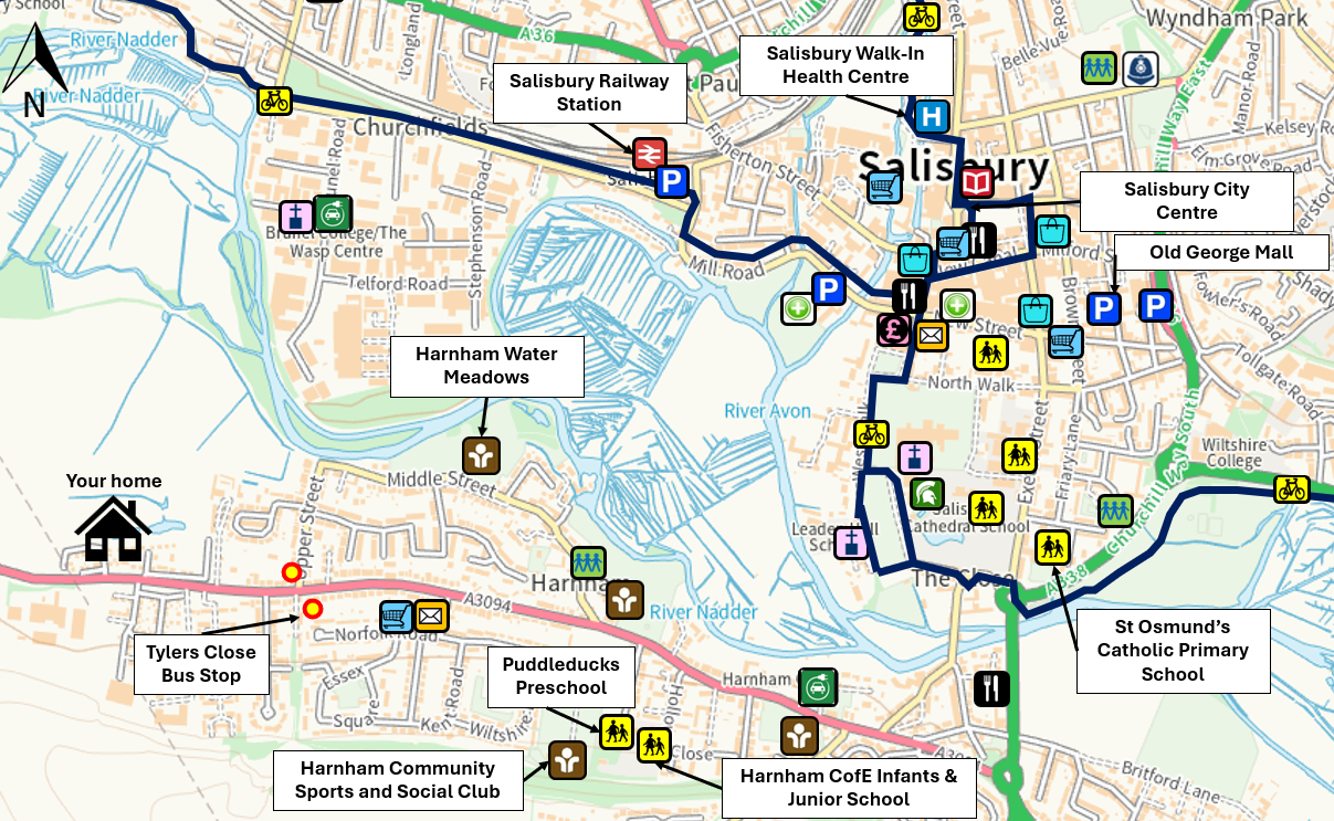 Your new home is well located to a variety of different amenities and facilities. It is situated 2.9km from the centre of Salisbury Town Centre, with the map below showing key amenities and facilities.