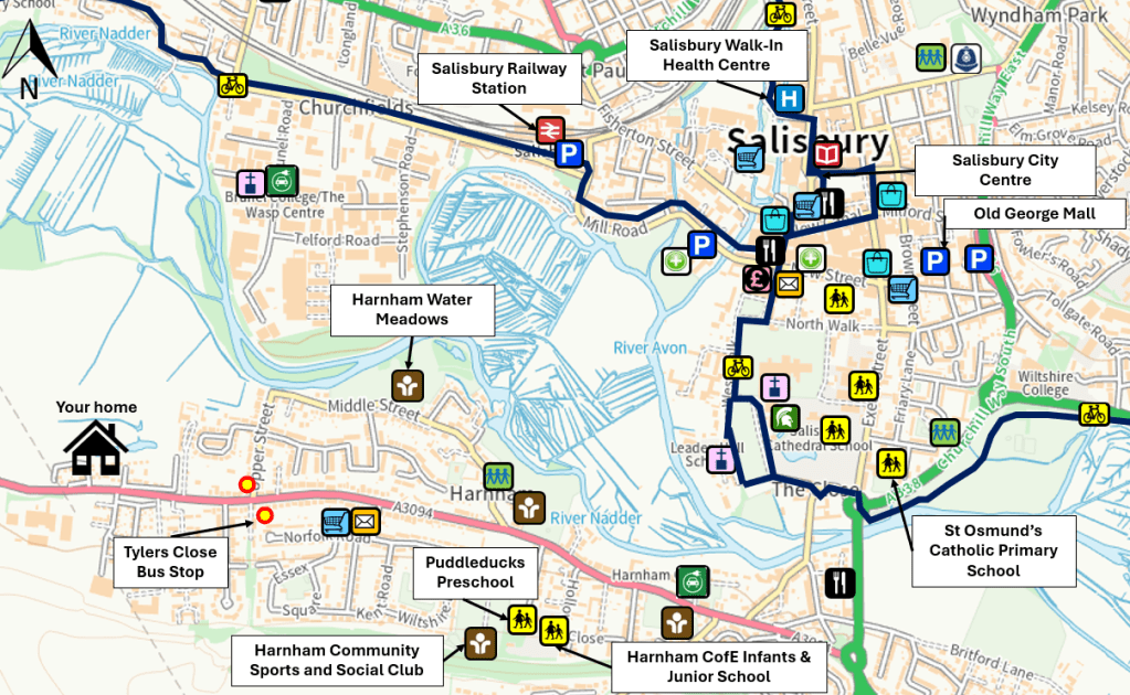Here you can find a link to a map of Salisbury and Wilton walking routes: www.connectingwiltshire.co.uk/wp-content/uploads/2021/07/Salisbury_Walking_Map_2021_WEB.pdf