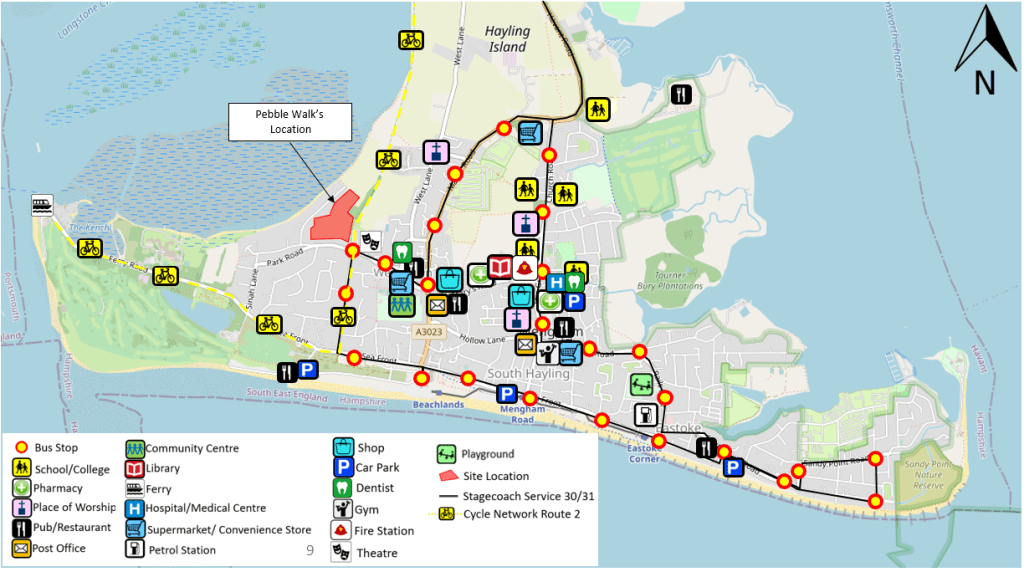 Your area is well served by pedestrian and cycle infrastructure, public transport and local amenities. The Pebble Walk development has good access to local facilities, being within 700m of West Town and approximately 1.9km of the facilities in Mengham.
