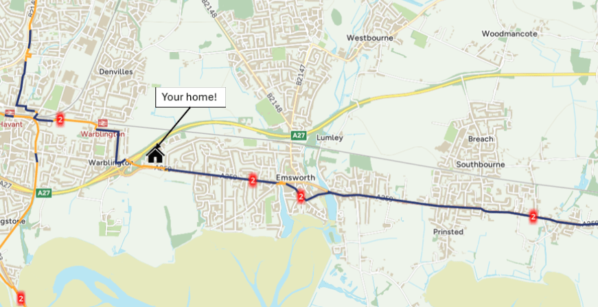 Did you know National Cycle Network (NCN) route 2 is right on your doorstep? Following the cycle path on Havant Road, NCN route 2 runs from Chichester, through Emsworth and Havant, and continues further southwest to Hayling Island. This route then runs from the south of Hayling Island across to Portsmouth to the west and then further northwest onto Southampton, running primarily along the sea front.