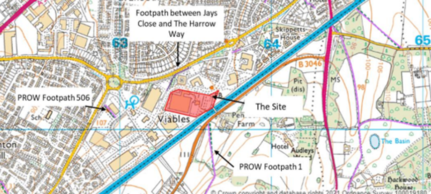There are a few Public Right of Way (PRoW) in the vicinity of Indurent Park, with the closest being along eastern tip of the site. There are PRoW (013/10/2 and 013/10/3) which leads to Jays Close which then provides a footway leading to Cliddesden. If you are coming from Cliddesden area there is a footpath which provides access to the M3 footbridge which leads to Farleigh Road and PROW Footpath 1, which then allows for you to access the site to the south. Other routes shown provide links to facilities and amenities in the local area.