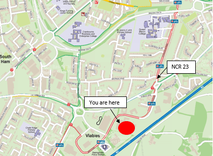 The National Cycle Route (NCR) 23 shown in the map below from Basingstoke and Deane Interactive map, is near the site, with other cycle routes shown in the first map, which provide access to the town/train station. There is plenty of parking available at St Modwen Business Park including sheltered cycle storage, meaning you can store your bike safely at work.