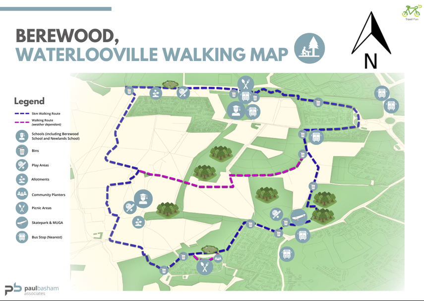 We have produced a walking map for Berewood, including what is available along the routes. This information is accurate as of December 2025. As the development grows this walking map will be updated to reflect any changes.