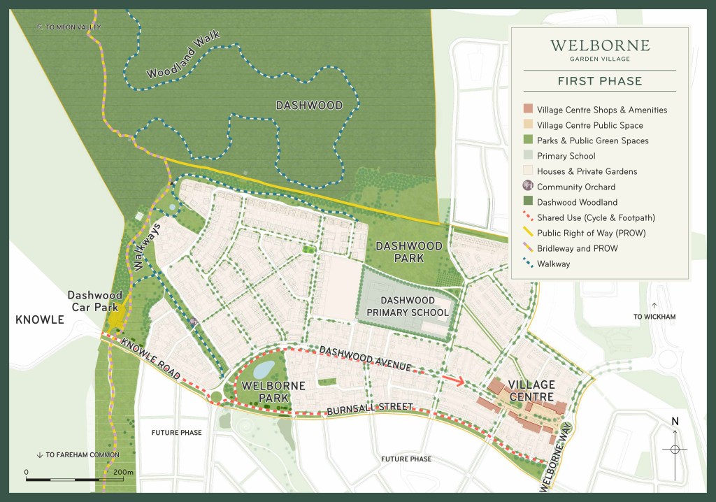 Welborne has been designed around green spaces and walkable neighbourhoods. Welborne will be built out in phases over a number of years and when complete will have a network of pedestrian, cycle and public transport routes throughout.