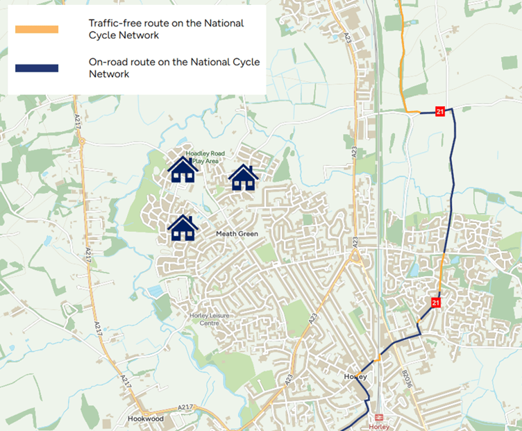 In addition, Riverside Green Park is located an approximate 11-minute cycle to the south of the site. The park forms part of the Horley Green Chain which is a belt of public open space providing a key commuter route between Horley and Gatwick Airport as well as a recreational and leisure facility for all to enjoy.