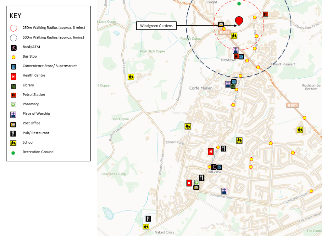Your new home is ideally positioned on the edge of Corfe Mullen and is therefore within walking distance of a number of facilities and amenities. We have provided a handy map below which gives an indication as to where you may find certain facilities.