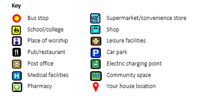 See below for a brief summary of walking and cycling times to your key local amenities.